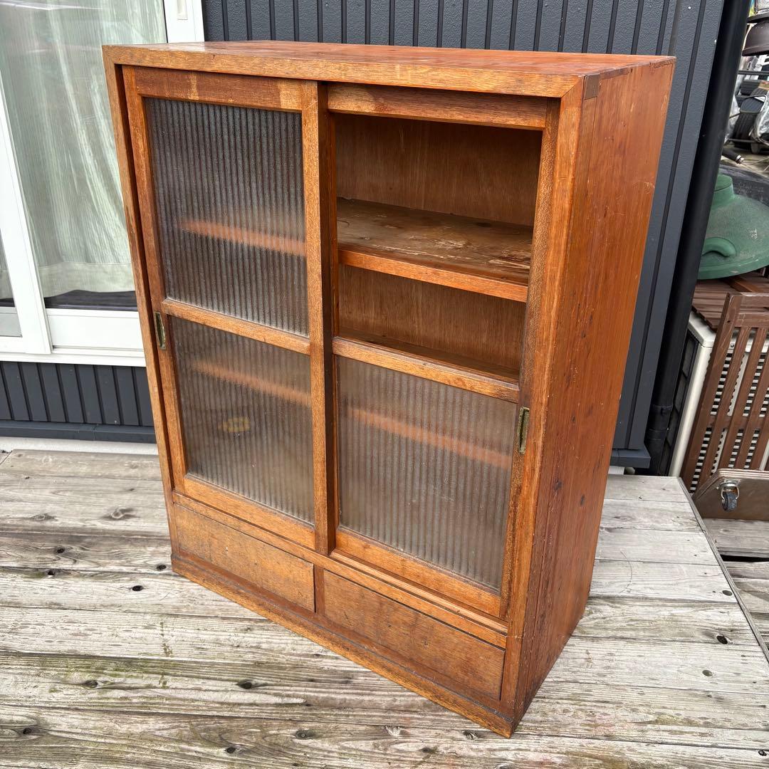 ブラウンキャビネット サイドボード ガラス扉付き